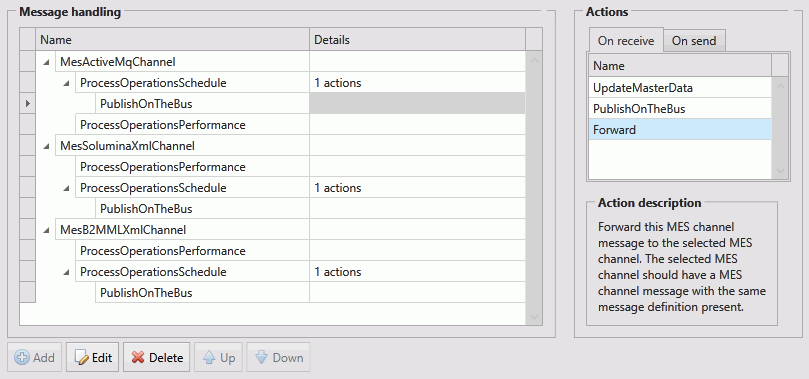 This tab allows you to select the channels that will be used by this bus stop. The messages contained in the selected channels will be available in the MES Messages Handling tab.