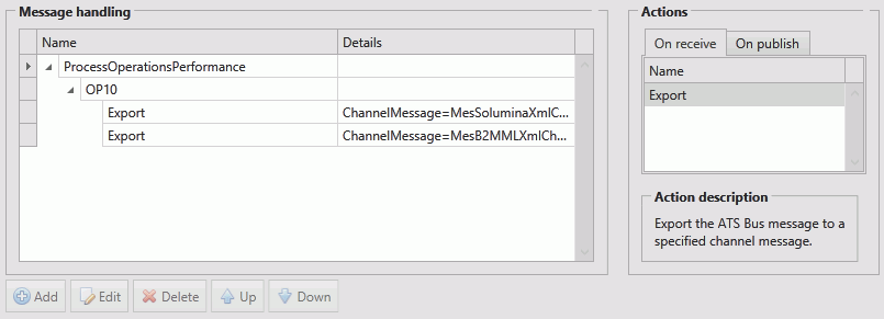 3. In the right-hand pane select the On receive or On publish tab to choose the type of action you want.