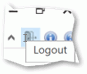 The logout button in the upper right corner of Cockpit, bus stop monitor and the work order manager (as shown below) logs out the current user and shows the ATS Security Manager login screen to logon as a different user.