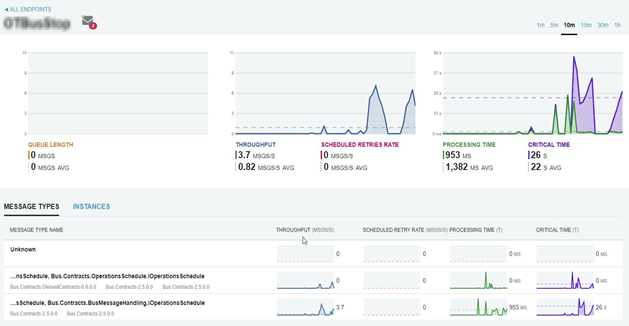 Selecting the bus stop (a.k.a NServiceBus endpoint) in the ‘Endpoints overview’ offers a more detailed view of the bus stop.