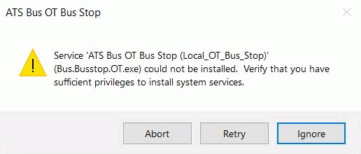 This can fail due to insufficient rights assigned to the user running the ATS Bus Stop service.