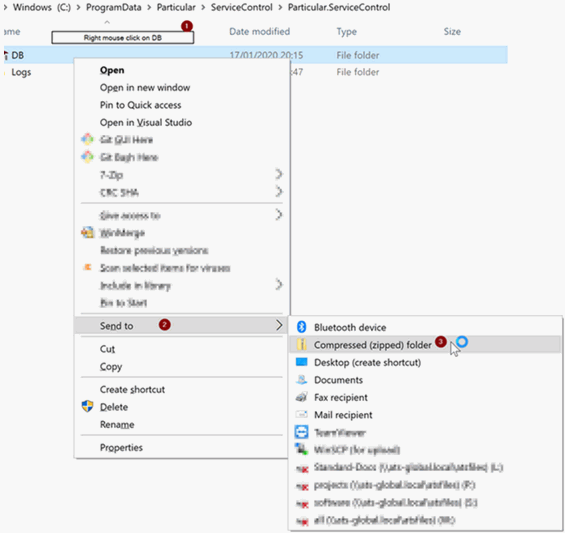 Once the backup is completed, go into the DB directory, you should now be in ‘C:\ProgramData\Particular\ServiceControl\Particular.ServiceControl\DB’.
