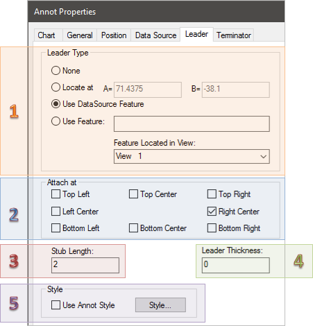 Select this button to use the feature selected for the annotation’s DataSource property. The DataSource property must resolve to a single feature or no leader will appear.