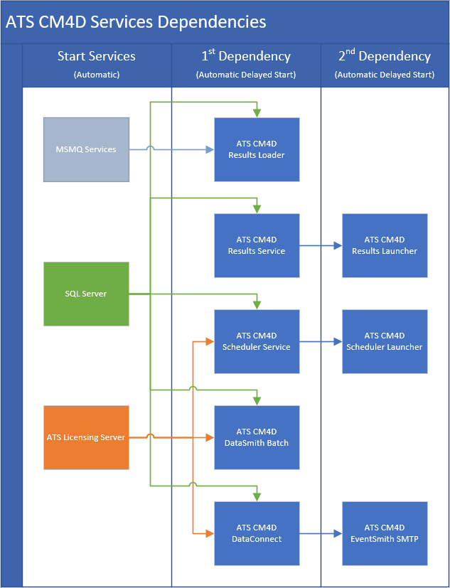 - Set ATS CM4D Launcher Service to depend on ATS CM4D Scheduler Service