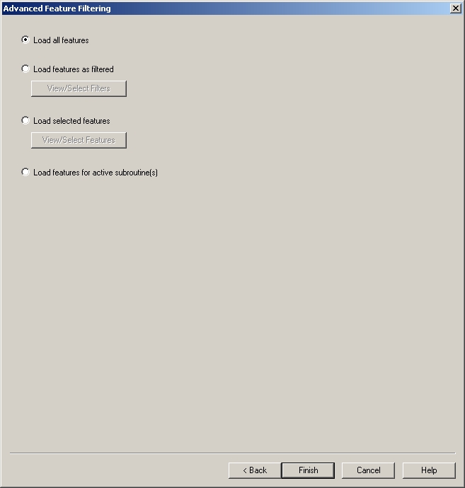 If you double click the routine label the Advanced Feature Filtering dialog will not be shown and the routine will automatically be loaded with the default feature settings (Load All Features)