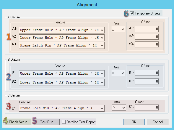 When enabled, values entered in the Offsets fields are applied to the Alignment in the current session of CM4D, but are not saved to the database. Temporary Offsets are on by default.