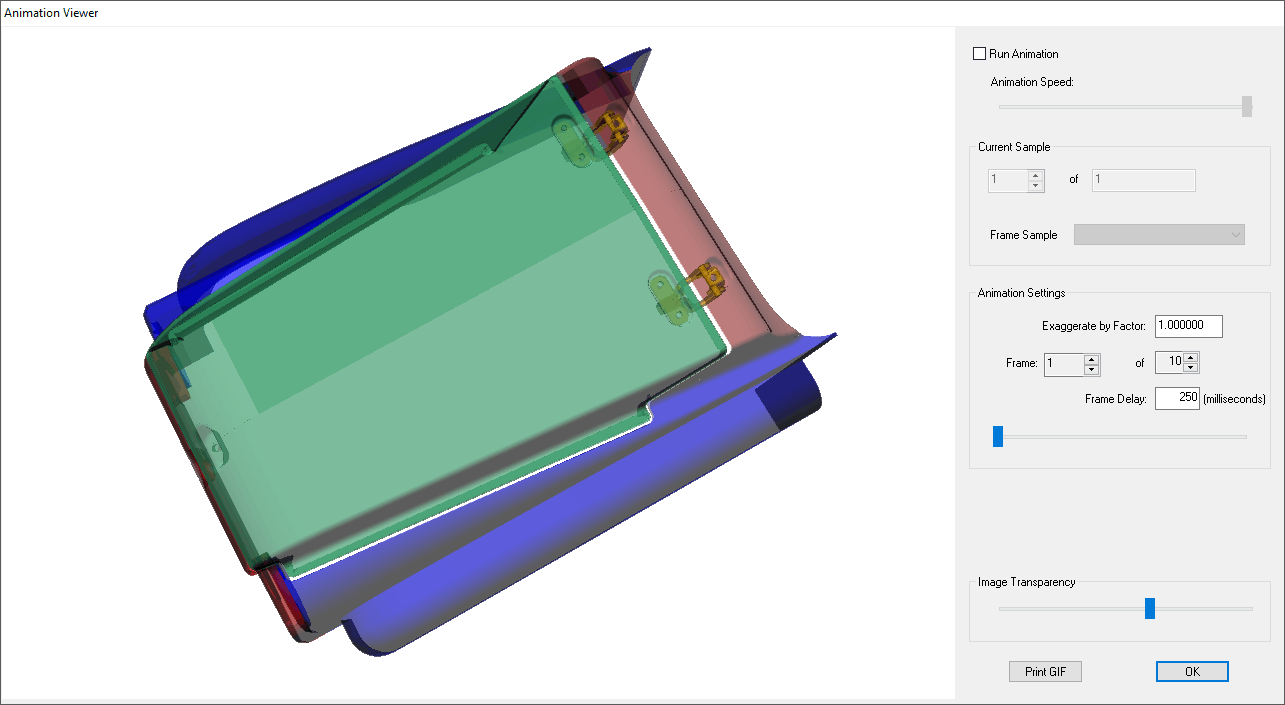 Exaggerate by Factor - The change in the position of the parts will be exaggerated to make small deviations easy to see. By default, this is set to 1, but this may be set to a larger integer if needed to better display your part positions.