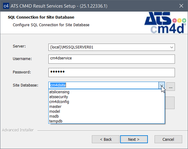- Configure Database Options - The connections strings for the CM4D Site Database and CM4D Results Database are the most important settings as they allow the services to connect to one another. Using the .4ds file provides both the Site and Results database connections.