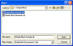 Open Simple Block Actuals.4jr in DataSmith.