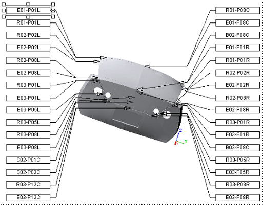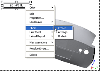 CM4D arranges chained annotation ascending to the right, as in the example below, and they may run off the edge of the document region. If you have many features, or the annotation you are going to chain is large, you may want to place it in the lower left hand corner of the sheet before you create your chain.