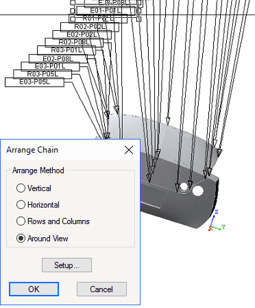 When creating a Chain, an dialog prompts you to select the method by which you want to chain the annotation. Each method has additional Setup options related to layout. The Setup button is dynamic based on the selected Arrange Method.