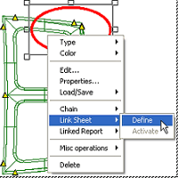 Right click on the ellipse and select Define from the Link Sheet menu.