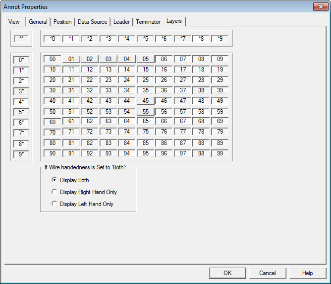 The layer(s) assigned as a property of an image may be toggled on or off in a View annot by selecting (or deselecting) the layer number button in the Layers tab of the View's Annot Properties dialog. The layer buttons can be selected individually, by row, or by column. All the layers can be selected or deselected at once using the