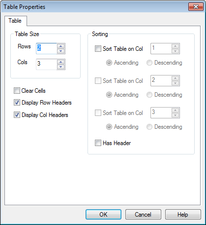 Clicking Setup opens the Table Properties dialog. The Table Properties setting determine the overall properties of a table. Individual cells can have their own properties.