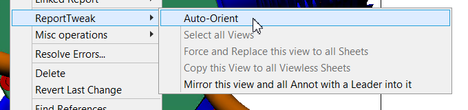 When a report is in ReportTweak mode, the View Auto Orient dialog can be accessed via the right-click menu on the View Annotation: ReportTweak>Auto-Orient ReportTweak>Auto-Orient.