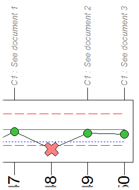 If the View Cause Comment check box is selected in the Chart Plot Space dialog, the cause comment will appear next to the cause label at the top of the control chart.
