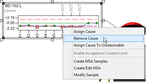To remove an assigned cause, from reasonable limits or unreasonable limits, right click the marker with the cross-hair cursor.