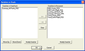 In the DataSets to Stack dialog, select the DataSets you want to stack from the DataSets in Document column, and use the arrows to move them to the DataSets in DataStack column.