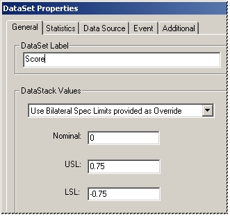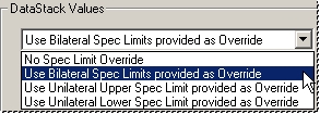 Setting the DataStack Values section of the DataStack Properties dialog will allow you to override any individual DataSet Spec Limits to use a single spec limit to the entire DataStack.
