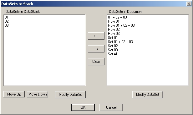 DataStacks are a method of combining DataSets to perform various calculations. DataStacks, once created, are a DataSet. Thus, DataStacks use most of the same properties as a DataSet, except for the Statistics tab, which has only some of the options available.