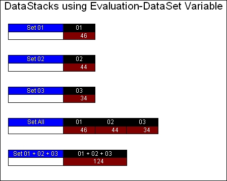 The resulting DataStack has a row for each DataSet in the stack. The label of the row is the label of the DataSet. There will be one column for each SiftRule. If more than one DataSet is stacked, then the number of columns will be determined by the DataSet with the most SiftRules defined. The label of the column is set to the label of the SiftRule.