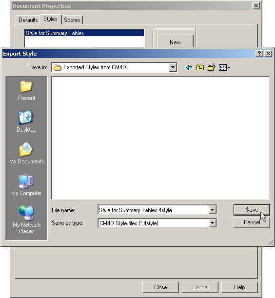 Export a user-created style from your document. The exported styles are saved with a *.4style extension which may be saved to any folder. Multiple styles may be selected at one time and exported into a single export file. The Export function may be used when common styles need to be shared from template to template. The style and all included properties will be exported as a ".4style" file, which may then be imported into a new template through the Document Properties Styles tab. |