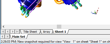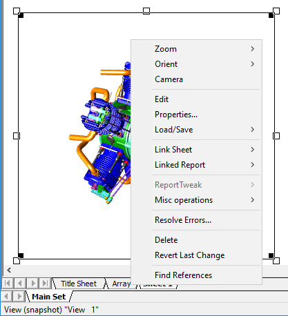 CM4D View Snapshots refer to the automatic process of converting a dynamic 3D model into a static 2D bitmap image. View Snapshots (i.e. bitmaps) are stored as part of the CM4D document. All Views within the document are technically a Snapshot "freeze frame" until the view is put into edit mode to manipulate the 3D model. Once you exit edit mode, it returns to the snapshot state. View are still selectable with a single click to move its position on the sheet or to access the right-click options menu.