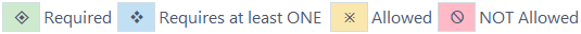 Feature types are derived based on the characteristics that are present when data is entered into the database. The matrix below shows the characteristic criteria used to derive each feature type and which are required for the constructed types.