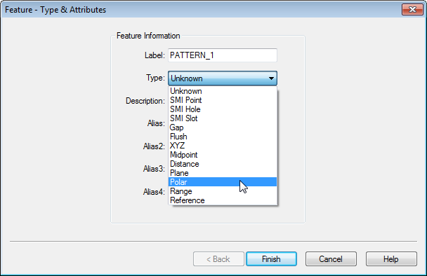 In the Feature dialog, enter a label and select Polar from the dropdown menu.