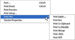 Clicking File in the Menu bar brings up CM4D's printing options: