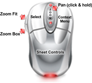 CM4D is easier to operate with a mouse. The mouse button controls are slightly different when manipulating the sheet area than when editing a view image in a report.