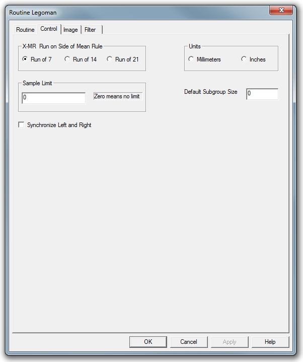 The Control Tab contains controls to be applied as default settings at the Routine level.