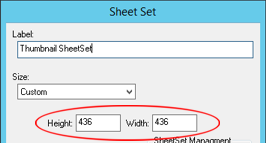 To define a thumbnail image for the report, you can either create a Sheet specifically for use as the Thumbnail, or select an existing Sheet. The benefit of creating a Sheet that is only used to create the Thumbnail image is that you can create a special SheetSet and set a different size Sheet.