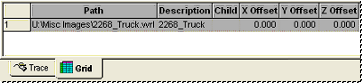 To view the properties of a Document Image in the Info Bar, right click the image label in the Document Images tree and select View in Grid from the context menu. The properties displayed are those defined in the Image Properties dialog (shown above), including the Path, Description, Child, and the X, Y, and Z Offsets. Only the properties of a single image may be viewed in the grid at one time.
