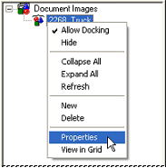 To load a new Document Image, open the Images tab in the Tree bar, right click on Document Images, and select New from the context menu. The properties available are the same as those in the Routine Image Properties dialog.