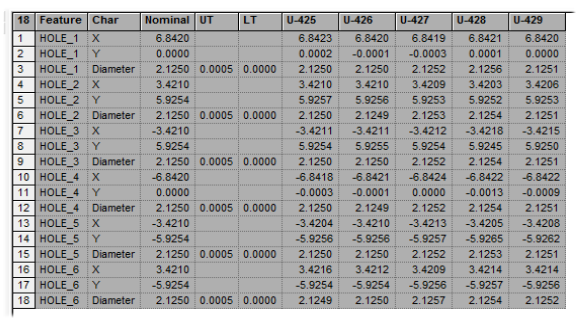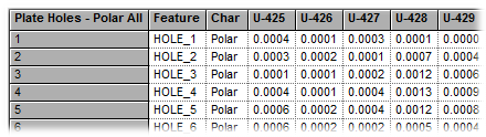 In the DataSource tab, right-click Samples and select View Samples in Grid from the menu. As with features, each row of the grid will contain a single characteristic rather than having multiple characteristics (such as x, y, and z) for the same point in a single row. Samples marked with a " d" are deviations rather than actual values.