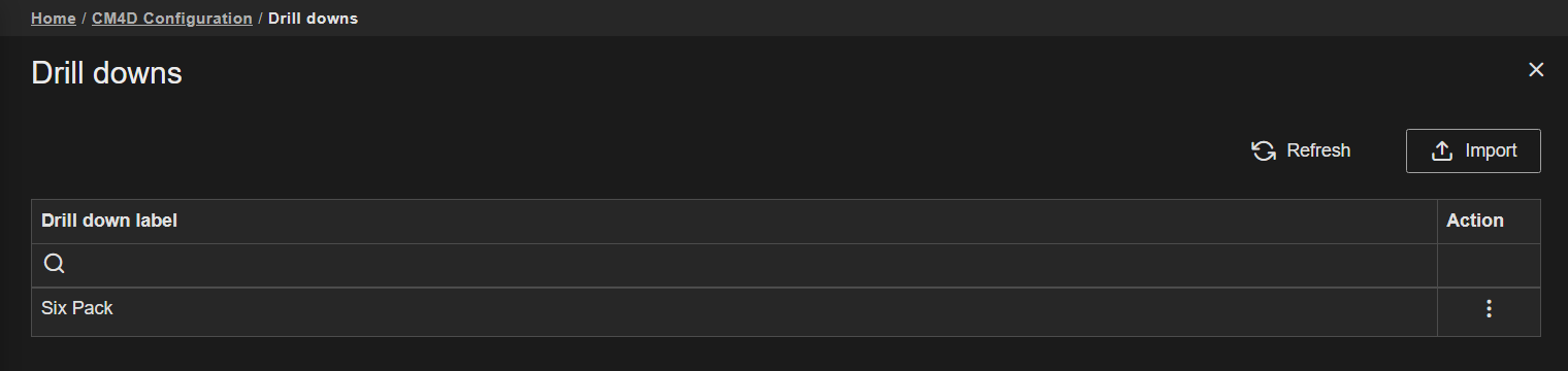 Drill down reports are Sheets created in CM4D Classic and then exported as a file. The saved file is then imported into the CM4D Configuration plugin.