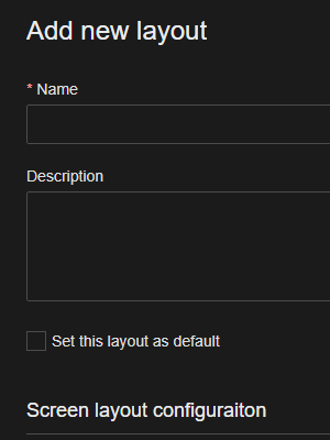 New Layouts can be created by clicking the Add button in the top right of the Layouts card. The Layout Properties blade is opened. |