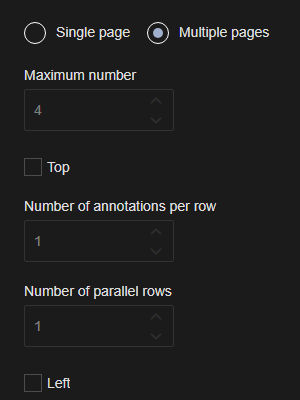This option only applies to Single Page layouts. The highest number of annotations (up to 40) displayed on each page. Annotations exceeding this number are loaded as additional pages to include all loaded data.