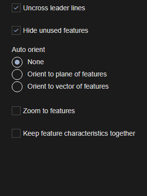 | Auto Orient | Automatically orients the 3D model to an optimal position based on the loaded features relative to the annotations in the Layout. The orientation can be done by Plane (XYZ) or by Vector (IJK). |