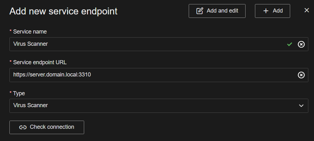 Virus Scanner - Optional; only configure if you have a virus scanner installed that will scan files before this files are uploaded to the server for processing. For ClamAV, the port must be set to 3310. See the topic Virus Scanner for more details.