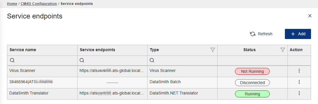 For example, CM4D Upload Portal clients utilize DataSmith Translator service via the Endpoint addresses saved in the CM4D Configuration to process data files from the web application.