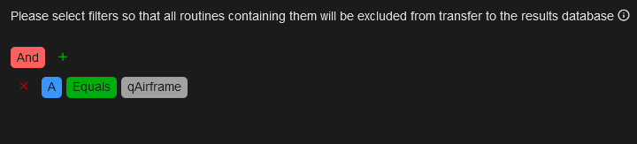An alternative, or an additional, method for excluding Routines from the Results database is to select Routine Filters as the criteria by which Routines are excluded.