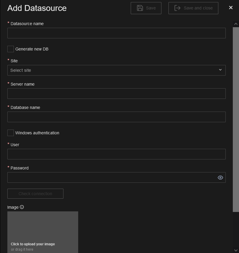 | Image | Assign an image to the datasource. | ||
