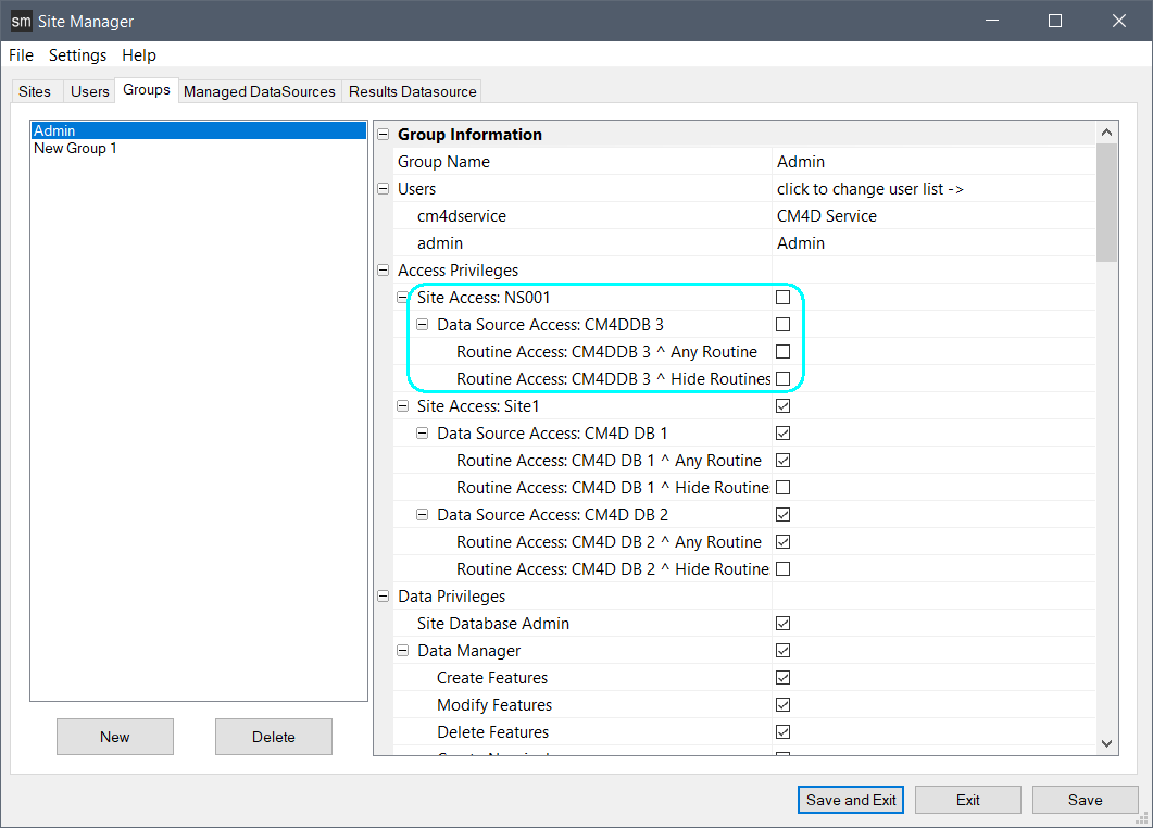 Assign Rights to Database via Groups in Site Manager (Desktop Application)