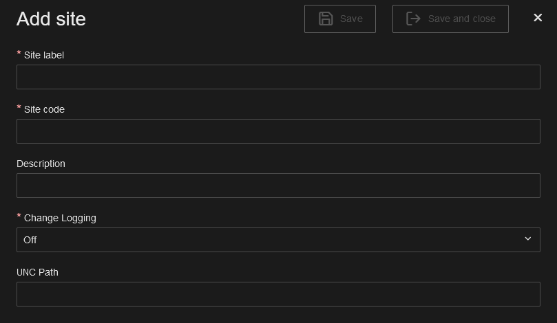 UNC Path: Enter the UNC path to be used by default in CM4D applications connected to this Site.