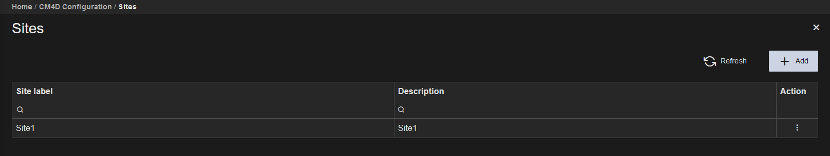 Home > CM4D Configuration > Site Management > Sites