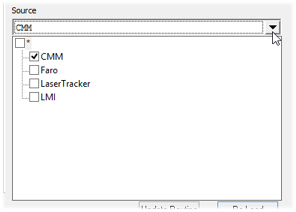 Select the source of the data by clicking on it in the menu. For example, CMM or LMI data can be chosen for the selected routine.