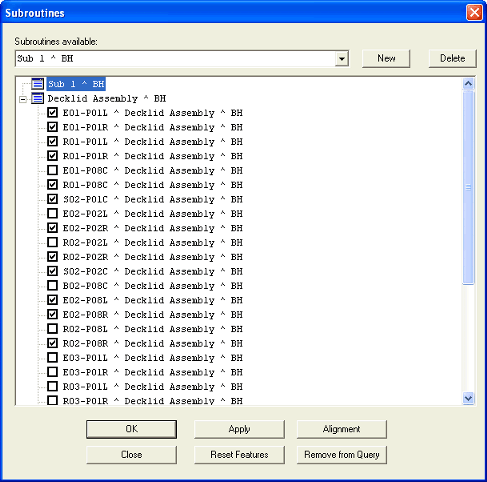 Clicking Reset Features will revert back to the state the subroutine was in the last time Apply or OK was clicked.