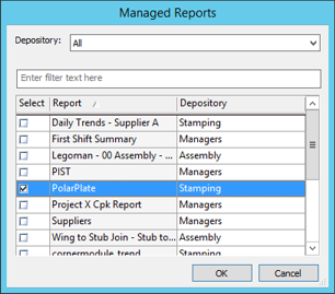 Choose a Depository to filter the list of Reports to show only Managed Reports from the selected Depository. If your Report Type is "Event", select All from the dropdown to see Managed Reports without Depositories assigned. |